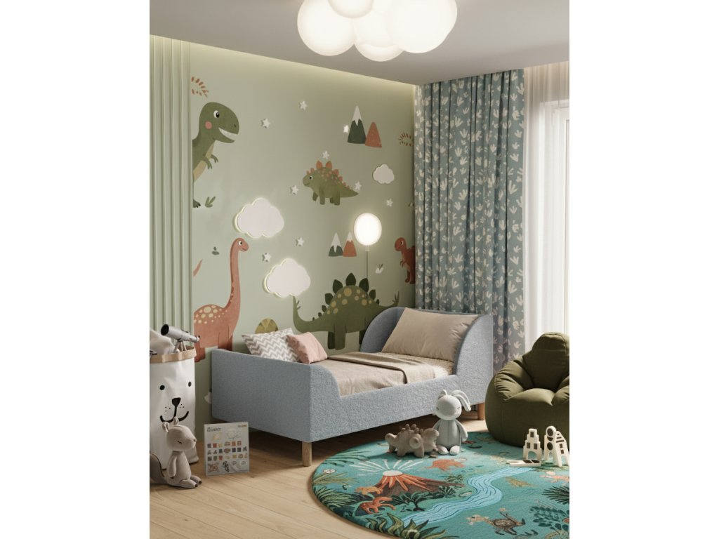Posteľ pre deti v prekrásnom dizajne, ktorá zároveň vytvára bezpečný prvok v detskej izbe. Posteľ je mäkká a bezpečná vďaka unikátnej konštrukcii postele