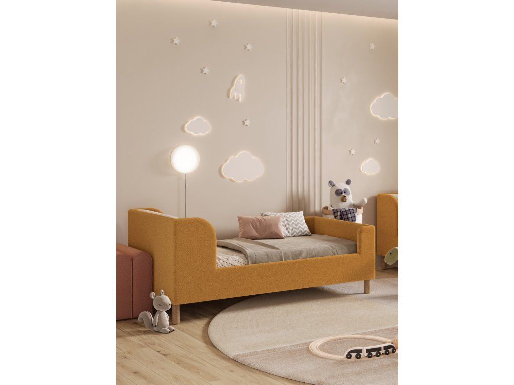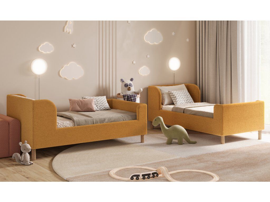 Posteľ pre deti a mladých ľudí LENI je navrhnutá v modernom dizajne, posteľ tvorí krásny vizuál detskej izby. Posteľ je bezpečná, mäkká a jemná na dotyk. Krásna svieža horčicovo-medená farba spestrí každú izbu.