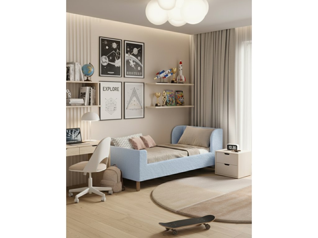 Posteľ pre deti LENI je navrhnutá v modernom dizajne, ktorá obohatí každú štýlovú detskú izbu. Posteľ je bezpečná, mäkká a jemná na dotyk.